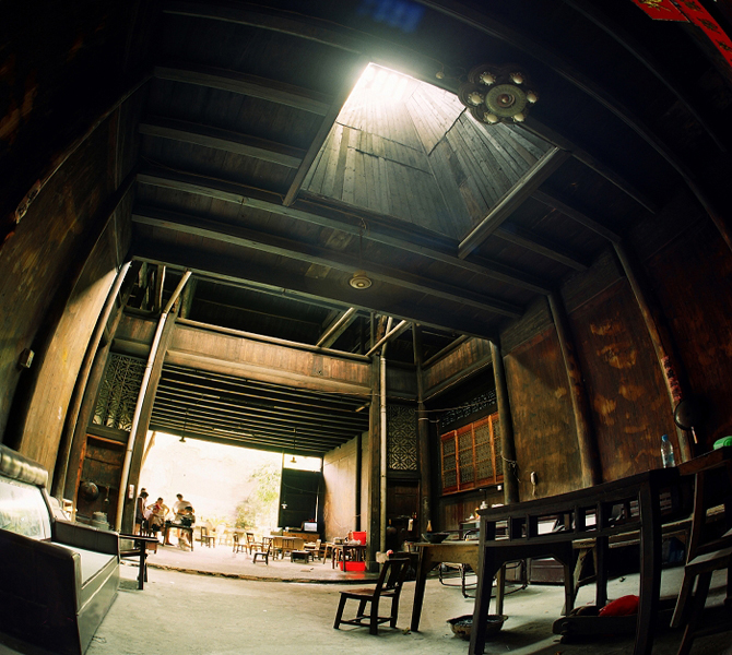 院內(nèi)廂房按家室的輩分依次居住。廂房的木窗雕龍刻鳳,每一板雕刻都是一個(gè)美麗的傳說(shuō)。其中《梁?!?、《天仙配》、《蚌殼燈》、《彩龍船》、《鼠叼葡萄》、《老鷹抓雞》等雕刻更是入木三分,惟妙惟肖。樓上則主要用于囤積貨物,擺放雜物、晾曬衣物等。后側(cè)建有伙房和廁房,院落后部則是花園,花園的盡頭緊連著河邊的私家碼頭。