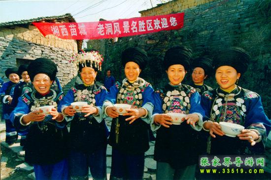 三、訪苗寨:穿越神工鬼斧的天然石洞,進(jìn)入老洞苗寨。鑼鼓喧天,笙歌陣陣,熱情的村民唱起了祝酒歌。品迎客酒,吃農(nóng)家飯,參觀列入歷史文化名村的古老獨(dú)特的石頭風(fēng)格建筑,觀看苗寨為您安排的互動(dòng)節(jié)目。下午四點(diǎn)乘老洞專(zhuān)車(chē)返回鳳凰古城,開(kāi)始新的愉快旅程。