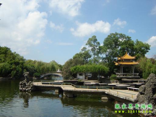 湖內(nèi)亭臺樓閣,垂柳煙色,湖岸綠色蔥蘢,鮮花妖艷,素有“妙絕 西湖勝虎丘”的美譽。主要景點有發(fā)源殿、岸花亭、雙壁坊、夕照亭等。