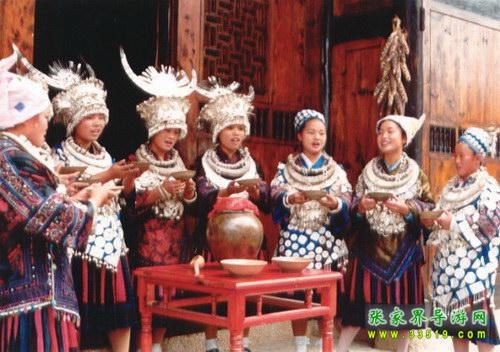 土家人叫槽門,是居住在一個(gè)院落里的土家人公用的門。每逢喜慶的日子,都要在這里舉行攔門儀式,以迎接高貴和尊敬的客人。按土家風(fēng)俗,進(jìn)槽門要對歌喝酒,如果客人對歌能勝,就輕松入門,如客人對歌輸了就得喝攔門酒后入門。喝攔門酒已成為一種迎賓的方式。