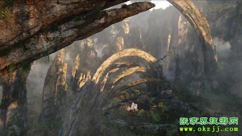 巍巍群山漂浮在天空,云霧繚繞,美麗壯觀……這是電影《阿凡達(dá)》中的經(jīng)典場(chǎng)景。阿凡達(dá)的全球熱映使人們對(duì)這部電影充滿了驚嘆和好奇,而這部影片奇幻的拍攝地到底是在哪里這一問(wèn)題也引發(fā)了影片熱愛(ài)者的紛紛推測(cè)。導(dǎo)演卡梅隆的一句“中國(guó)元素給《阿凡達(dá)》大大增色”不僅勾起了旅游愛(ài)好者的向往之心,更是引發(fā)了一場(chǎng)不小的爭(zhēng)論。片中美輪美奐的“哈利路亞山”讓人驚嘆向往,現(xiàn)實(shí)版的“哈利路亞山”到底是以黃山還是張家界的武陵源為背景,成了網(wǎng)友和旅游界的熱議焦點(diǎn)。“第42秒出現(xiàn)過(guò)張家界的南天一柱,第33分21秒出現(xiàn)過(guò)黃石寨的玉屏峰,第55分53秒出現(xiàn)過(guò)寶峰湖的瀑布……”在網(wǎng)上,有發(fā)帖者將這些在《阿凡達(dá)》影片中出現(xiàn)過(guò)的張家界景致一一羅列。通過(guò)慢放發(fā)現(xiàn),影片中大概有25分鐘完全是張家界的山水風(fēng)光。出現(xiàn)多次的是黃石寨前山的南天一柱,金鞭溪的劈山救母出現(xiàn)不低于5次,然而出現(xiàn)最多的還是寶峰湖瀑布和袁家界迷魂臺(tái)里面的擎天柱。而張家界和黃山的最大區(qū)別是黃山是花崗巖地貌,上面非常光滑,幾乎沒(méi)有植被,而張家界是石英砂巖地貌,上面植被覆蓋非常茂盛。