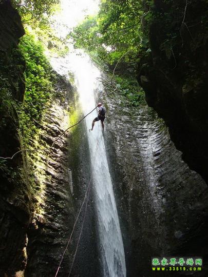 【吳王坡】來(lái)到這里以后,面前的絕壁逐漸開(kāi)闊,視野角度也慢慢放大。從我們這里平視出去,就可以看到對(duì)面絕壁的全貌,從山巔到溪谷的底部,一覽無(wú)余。對(duì)面的絕壁后面,就是著名的吳王坡村。相傳,李自成帶著大順帝的光環(huán),敗走北京城以后,轉(zhuǎn)戰(zhàn)秦嶺,先后渡過(guò)黃河和長(zhǎng)江,一路南下,來(lái)到了湘西,最后還是回天無(wú)力,只有兵敗歸隱,在緊鄰我們張家界市的常德市石門(mén)縣的夾山寺皈依佛門(mén)。對(duì)面的吳王坡村,就是傳說(shuō)中“沖冠一怒為紅顏”的吳三桂追殺李自成起義大軍,和起義軍進(jìn)行生死決戰(zhàn)的古戰(zhàn)場(chǎng)之一。傳說(shuō)吳三桂在此大勝李自成起義軍,殺死起義軍幾千人,是吳三桂一生之中的“惡仗”之一。當(dāng)?shù)氐?a class="insidelink" href="http://m.qianzhihui.com/fengqing/" title="土家">土家人后裔,根據(jù)這段歷史上的傳說(shuō),將村子的名字叫成了“吳王坡”。吳王坡村的名字又叫吳亡坡,這個(gè)“亡”是“滅亡的亡”,是說(shuō)吳三桂雖然此戰(zhàn)勝利以后,坐鎮(zhèn)云南,被封為“平西王”,最后還是在“三藩叛亂”之中走向了滅亡。而滅亡的因緣和轉(zhuǎn)折,在當(dāng)?shù)乩习傩湛磥?lái),就是這里,就在吳王坡。所以,吳王坡又有了“吳亡坡”的名字演繹成分。