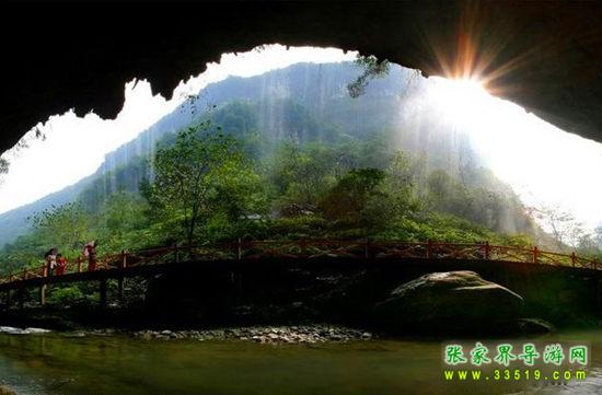 【中華牌天然空調(diào)】喲,我們行走到這里,怎么感覺(jué)到了陣陣涼風(fēng)撲面而來(lái)?!奧,原來(lái)是游道的轉(zhuǎn)角處有一個(gè)天然的涼風(fēng)洞。大家都知道,張家界的天然溶洞很多,比如黃龍洞、龍王洞、九天洞,還有我們公司即將開(kāi)發(fā)的更漂亮更具有特色的懸絲洞。溶洞內(nèi)都是冬暖夏涼,和洞外的氣溫不一樣。所以,游客朋友們都叫它中華牌天然空調(diào)。大家可以在這里盡情地享受天然空調(diào)。