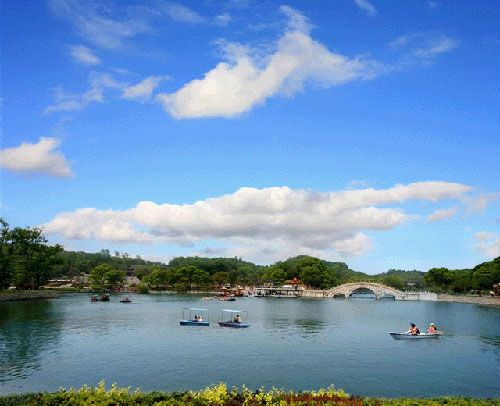 君山的竹子,更是奇異多姿,別有情趣。有點點紫斑、宛如淚痕的斑竹,有棱角方正的方竹,還有楠竹、紫竹、桂竹、龍竹、龜甲竹、梅花竹、圣音竹、連理竹等10余種,分布在十幾個山頭,占地500多畝,漫山遍野,堆綠疊翠。微風吹拂,細竹婆娑,發(fā)出切切私語;又如“湘靈鼓瑟”,娓娓動聽。故此前人留下了“碧玉森森綠水灣,鳳鳴環(huán)佩滿湘山”的詩句。尤其是一叢叢的斑竹,那迎風裊娜的身影,珠光點點的淚紋,更令人神思飛越,自然想起"蒼梧恨不盡,染淚在叢筠"的詩句。不僅僅斑竹有一段佳話,方竹、羅漢竹、圣音竹也各有傳聞,給君山島增添了無限的情趣。這樣,藍天的飛鳥,碧水的游魚,和隨風搖曳多姿的綠樹奇竹,構(gòu)成了一幅生機勃勃的君山自然景觀圖。