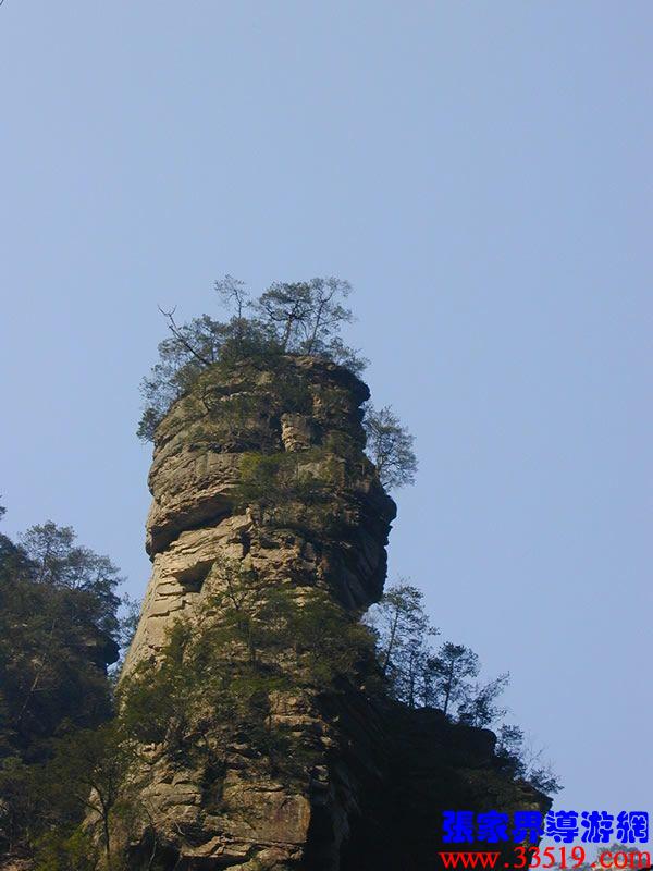 (花果山、水簾洞)孫悟空的花果山水簾洞到了。并不是張家界人過于牽強,胡亂把西游記的事兒往這兒湊,實在是巧合,《西游記》劇組的導游楊潔及唐僧、豬八戒、孫猴子、沙和尚等飾演者,一見到這地方就十分肯定地說:外景地選遍全國,只有張家界才真正是《西游記》筆下的神仙妖魔世界。大家順著我的指向往前看,左前方是帶著僧帽,披著袈裟,嘴中念念有詞的唐僧,緊跟在他后面的那座黑乎乎的石峰當然就是沙和尚了;神通廣大的孫猴子半蹲在唐僧后側手搭涼篷,正在觀察敵情呢;豬八戒哪去了?不用說,不是貪吃貪睡,就是偷偷找小女子搭訕去了,花心去了。
