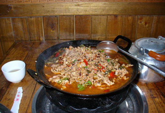 如果你想品嘗正宗的煙熏臘肉,還非得在張家界景區(qū)內(nèi)吃。在景區(qū)內(nèi)當?shù)厝碎_的小飯館里可以吃到被炭火烤得烏黑的香噴噴的臘肉,只要把外層洗掉就行了。這種臘肉在城里是不可能吃到的,它是在農(nóng)家的灶上慢慢烤出來的。