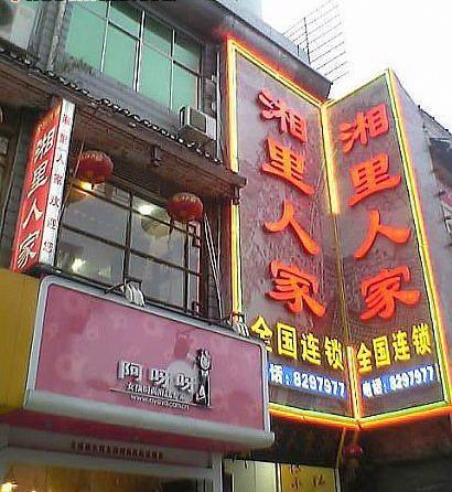 “湘里人家”,專門吃湘菜的地方,那里剛裝修過,雞煲和鴨湯味道超贊,臘肉也不錯的。