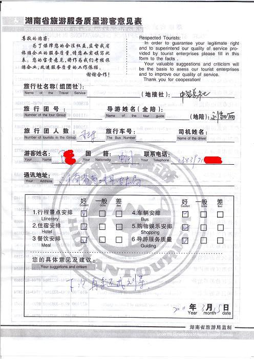 2011年3月15日衛(wèi)先生旅游服務(wù)質(zhì)量反饋:下次再來(lái)還找劉導(dǎo)