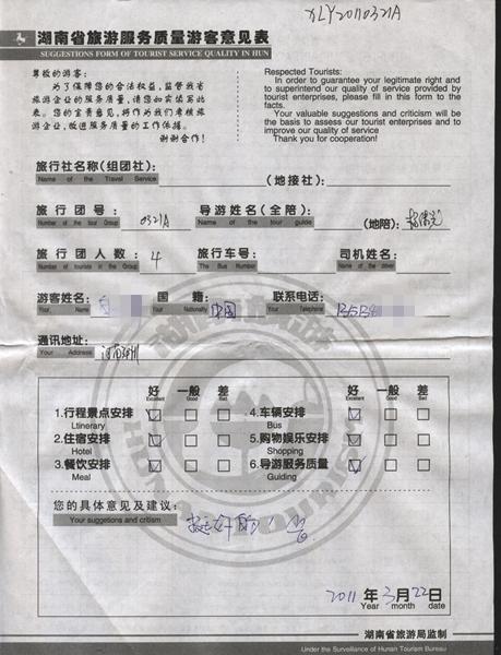2011年3月22日白小姐一行4人旅游質(zhì)量反饋:挺好的!