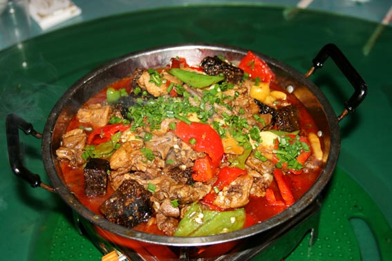 說到吃,鳳凰的苗家土雞、苗家臘肉、酸魚和血粑鴨是一定要嘗嘗的。苗家自釀的糯米酒每頓也要喝幾杯,雖然甜甜的,但后勁很大,要小心。臨走時(shí)可以從飯館買上10來斤酒和一些臘肉。早晨7~9點(diǎn)時(shí),沿著東門內(nèi)的東正街往里走有個(gè)吃早飯的地方,生意火爆。店主人是一對夫婦,在門口賣米線、面、包子、煎餃、豬耳朵、豬頭肉、豬肘子、鹵蛋。