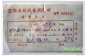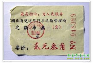 8月14日下午3時(shí),乘坐一輛很破舊的長途,約3小時(shí)顛簸到達(dá)宜都枝城鎮(zhèn),即那時(shí)通不久的枝柳鐵路起點(diǎn),每人2.3元。票上還印著“最高指示”。
